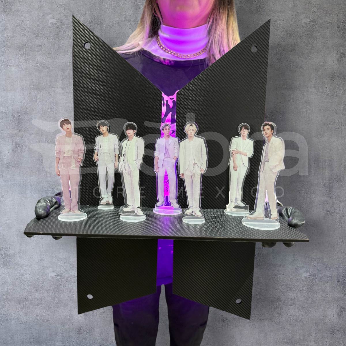 🔹 Incluye los 7 BTS: Figuras en acrílico cristal de 3mm, con corte de alta precisión que representa a cada integrante del grupo. Colócalos sobre la base especialmente diseñada para destacarlos.